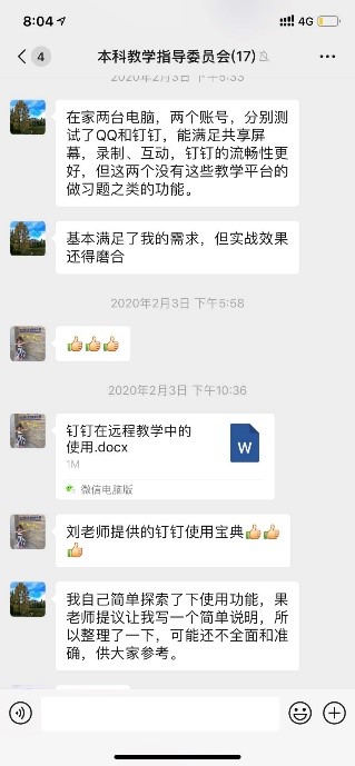 在还没有开学前,我就与老师一起开始了课程的准备工作,组建微信群及时向大家发布课程安排的进展,安装并测试多个线上平台、比较功能效果,寻求教务、信息网络中心老师的帮助以解决部分同学不能顺利进入直播课堂的问题。