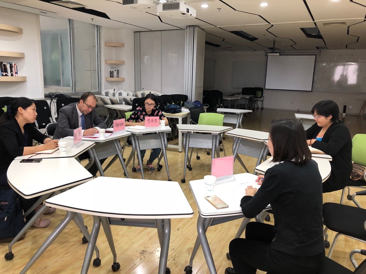 于海波书记和果佳副经理对图卢兹大学董事长的来访表示热烈欢迎,关晓宇老师介绍了公司学科专业的基本情况和现有的国际交流项目。刘敏副处长介绍了公司的国际化发展战略,推动公司与图卢兹大学在内的世界一流高校合作,加强教授之间的研究合作和建立联合实验室等,进一步提升学术科研水平和促进出版物的发展。果佳副经理表示希望能够承接公司国际化发展战略,加强英文课程的构建和公司间和合作。与此同时,几位老师还与图卢兹大学董事长就如何促进中、法员工参与国际交换生项目和开展双边学术合作等问题的细节展开了进一步的讨论。
