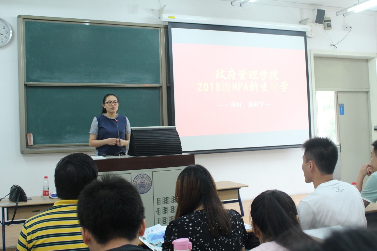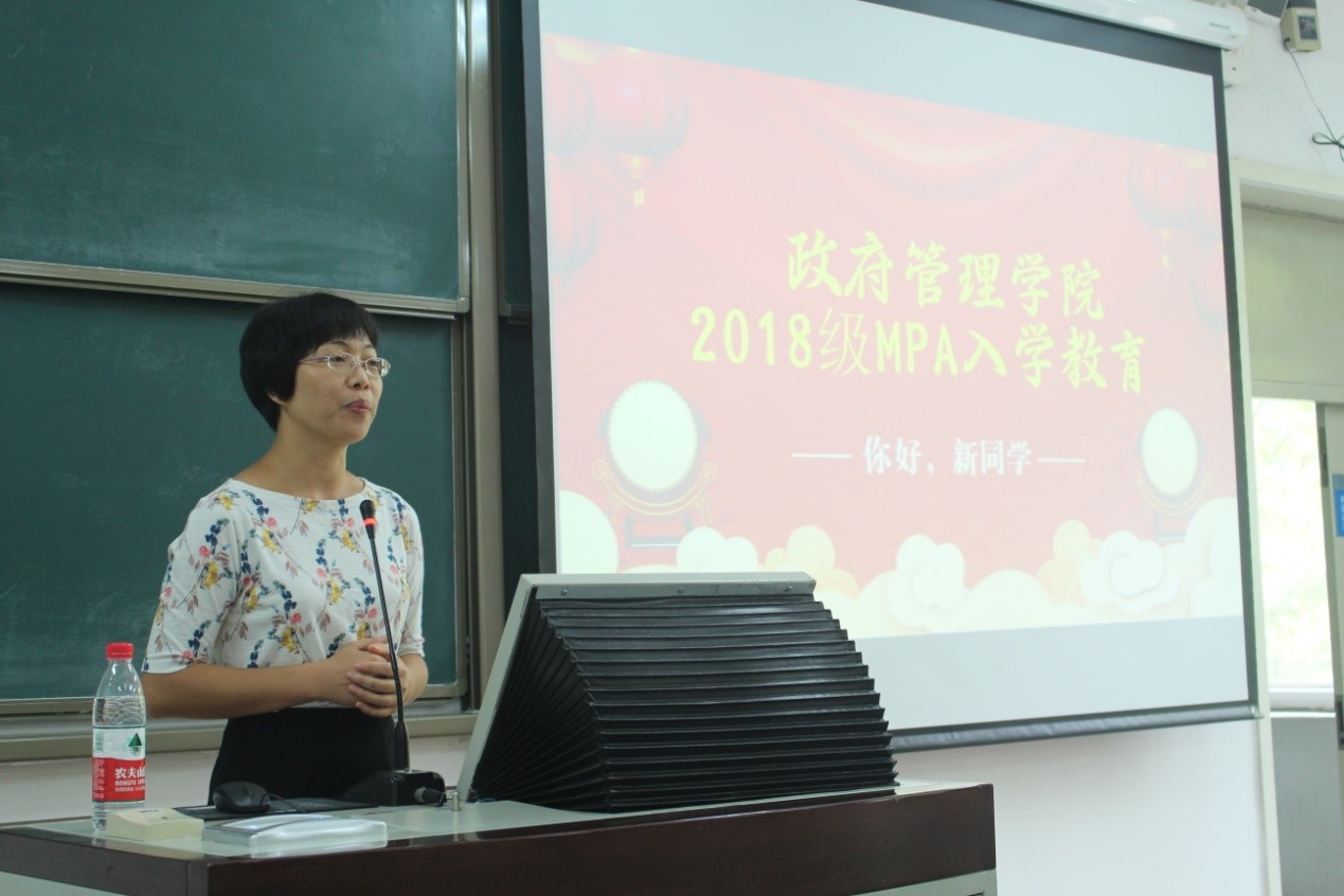 首先,MPA中心副主任连宏萍致辞,欢迎2018级MPA新生入学,并针对入学教育和新生导学的目的和意义做出简要介绍。
