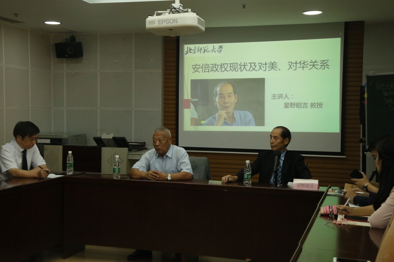 在讲座过程中,星野教授强调了美国对日本政治产生影响,所有的日本政权要被美国的政策所牵制,安倍政府的动态与对华、对美关系,论述日本国内的转变,脱离了战后规制。2015年日本由和平国家转变为普通国家,其改变的原因首先是美国的外部压力、日本国际贡献论和日美的同盟关系;其次是在安保条约签订后,安倍政权的政党因素、个人因素和其保守政权。星野教授表示,20世纪90年代以来,三方变化当中美国更看重和中国的关系,中美对话越来越强,而与日本的关系弱化,中美关系在某种意义上起着三方关系的决定性作用,中美关系在三边关系中占主导地位。