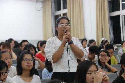 讲座以奏唱国歌开始,正值“9·18”纪念日,于老师以“国家、社会、民族”三方面为话题,从家国情怀、历史情结、师大文化等方面切入,使同学们认识到作为一个中国人的荣誉感和使命感,并不时向同学们提问,与同学们开展了互动。