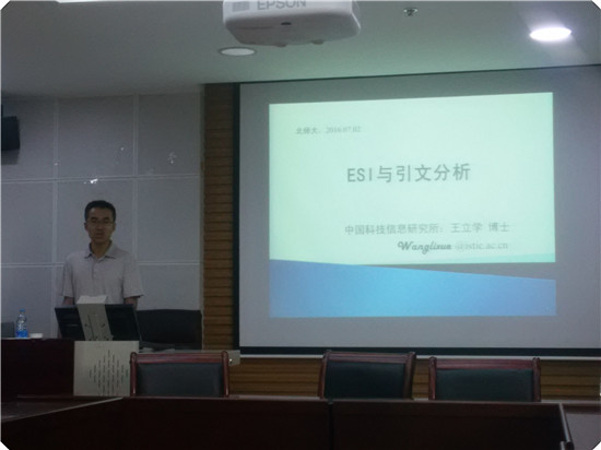 王立学博士是中国科学技术信息研究所信息资源中心的副研究馆员,主要的研究方向是引文分析、共词分析方法以及可视化分析。目前主持国家社科基金青年项目“面向文献相关性度量的共词与引文综合分析方法研究”。代表性学术成果有:“基于文本结构解析的动态共词方法研究”、“简论研究前沿及其文献计量识别方法”等。此次讲座,王立学博士为大家讲解了Essential Science Indicators(基本科学指标数据库)及其相关分析,引文分析的基本过程以及基于SCI的ESI实现等相关内容。