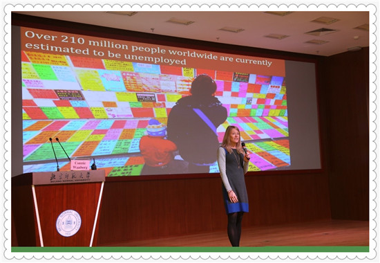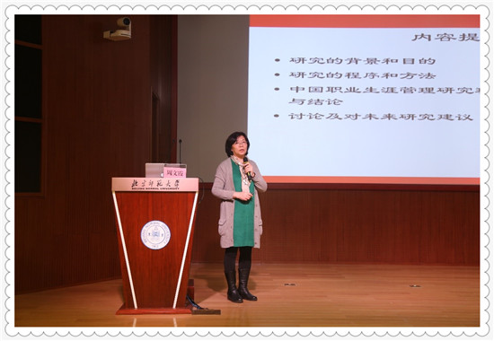 Professor Connie Wanberg gave a lecture about“The experience of unemployment:An overview on accumulated research”. Firstly, she outlined her presentation. And then discussed the contact between unemployment and health, and analyzed the unemployment and well-being. And at last, she listed the research questions of study methodology.