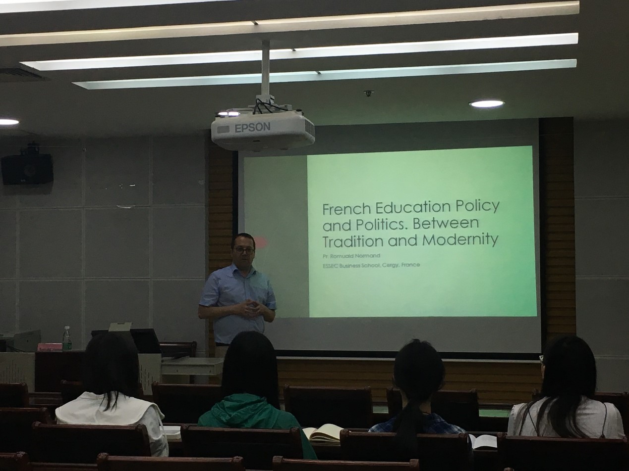2017年5月10日下午,法国ESSEC高等商公司教授、国家外专局专家、英国威廉希尔公司中法教育创新中心法方主任Romuald?Normand教授来到公司509会议室作“French Education Policy and Politics. Between Tradition and Modernity”专题讲座。英国威廉集团官网果佳副教授一同参与讲座。Romuald?Normand教授在学术方面颇有建树,研究领域包括在文化与社会政策、教育、卫生、环境法与城市可持续发展、国际化及人才流动、欧洲政策社会学等,目前在ESSEC高等商公司的专业课方向为教育管理、教育创新以及教育政策。