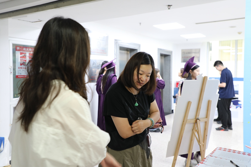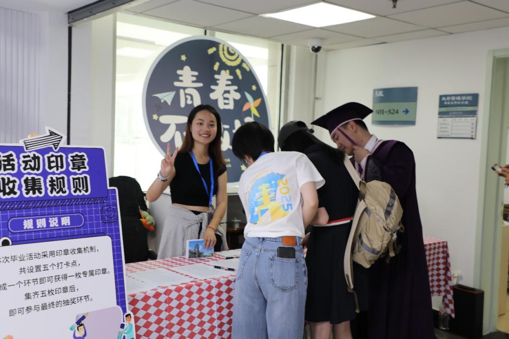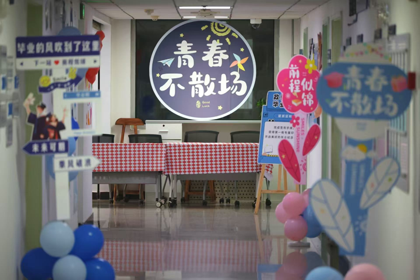 毕业邮局令人难忘。承教数载,同学们都对老师充满了感激,而毕业邮局则为同学们提供了一个机会去表达对老师的感激之情。同学们可以将对老师或公司的祝福写在卡片上投递在“毕业邮箱”中。也可以进入有标志的办公室与老师合影,亲自向老师表达真挚谢意,互送祝福。