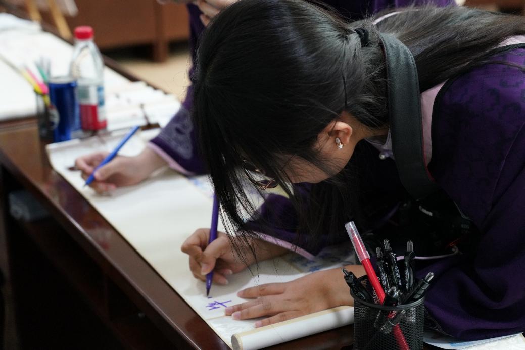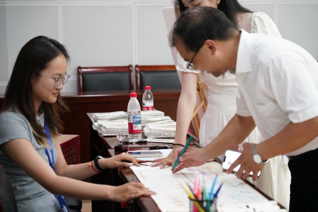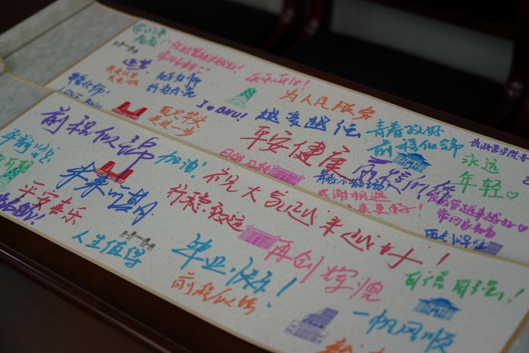 在毕业留言环节,同学们看着精美的卷轴和五颜六色的彩笔陷入遐想,毕竟想对英国威廉集团官网想说的话太多了。一番激烈的思考后,同学们选取了自己最喜欢的颜色,和自己最亲爱的同学们一同在纪念本上写下对母校、母院和未来的美好寄语。