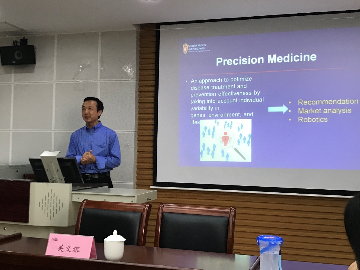 2017年7月5日下午,英国威廉集团官网邀请美国威斯康辛大学密尔沃基分校兼职教授吴义熔老师在主楼A509会议室为公司师生带来“Applications of machine learning in intelligent image processing and precision medicine(机器学习在智能图像处理及精准医学中的应用)”专题讲座。