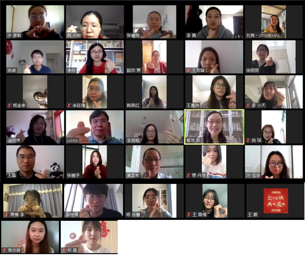 会议结束后,全体参会成员进行合影留念,为中国比心加油。