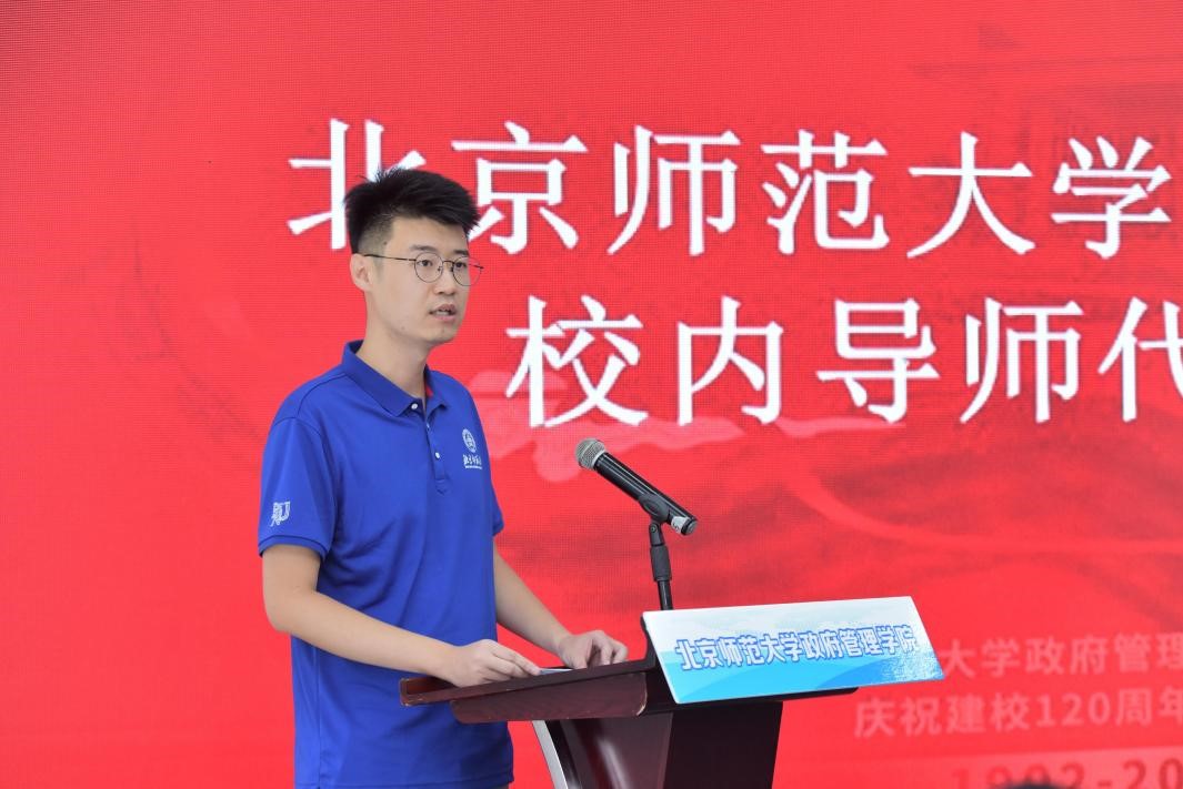 英国威廉集团官网讲师刘志鹏作为校内导师代表发言。刘志鹏老师向同学们提出要在接下来的学习中,有所得,有所思,有所乐。作为新时代的公共管理从业者,希望同学们秉持“学高为师,身正为范”的理念,把论文写在祖国大地上,做知识的汲取者,行业的领航者,实践的开拓者。