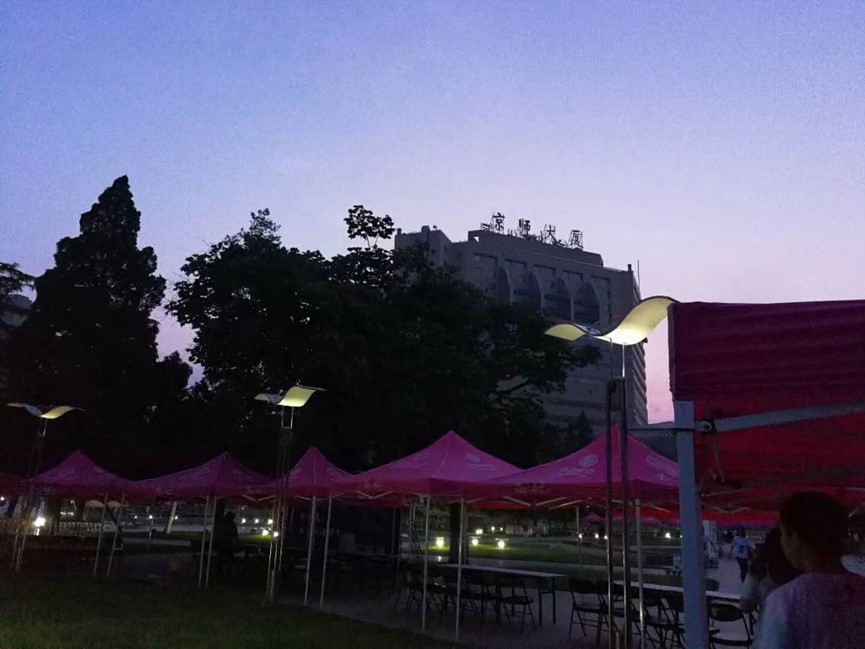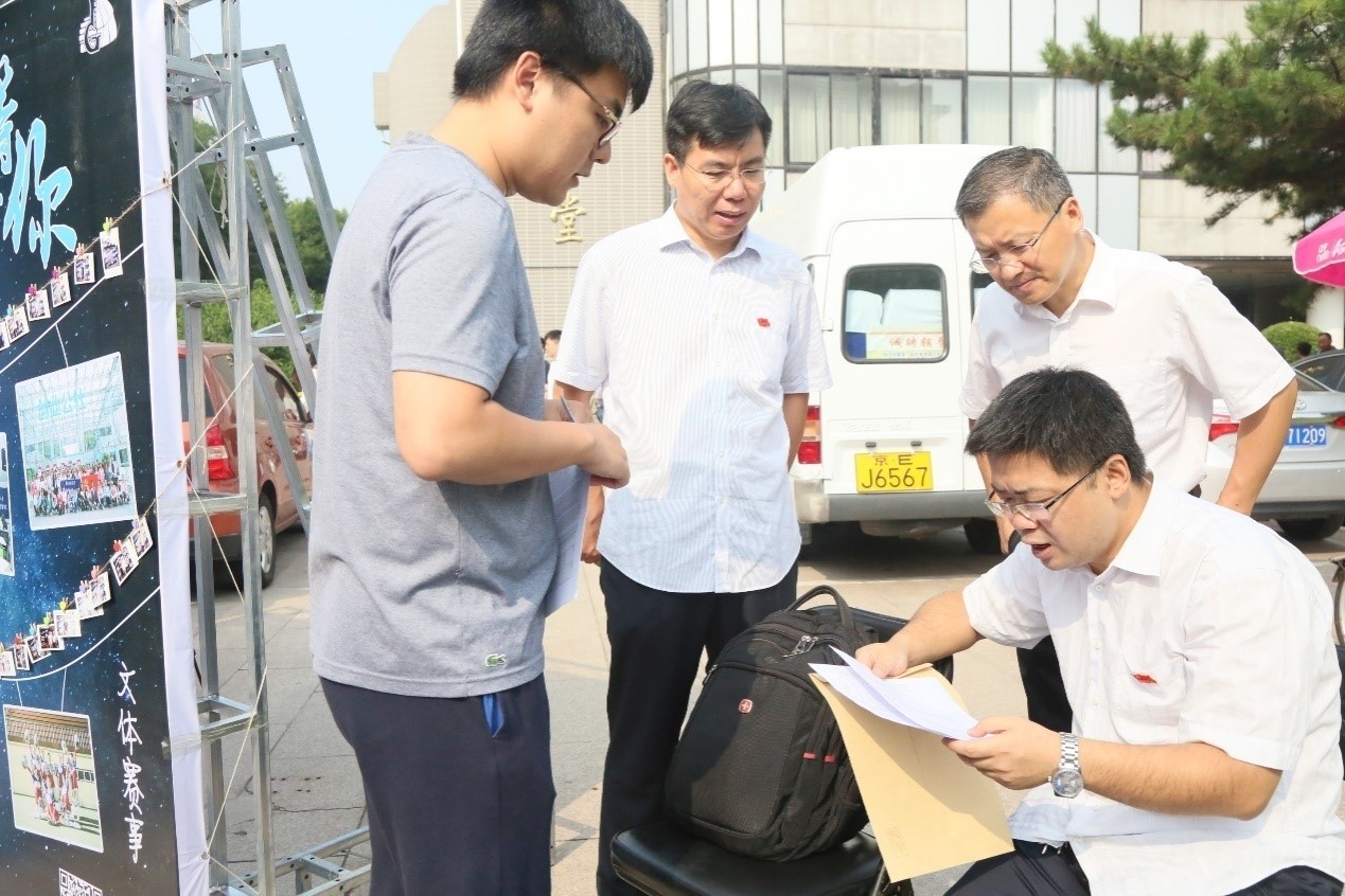 凌晨六点,公司的迎新志愿者到达京师广场,开始了一天的迎新工作。