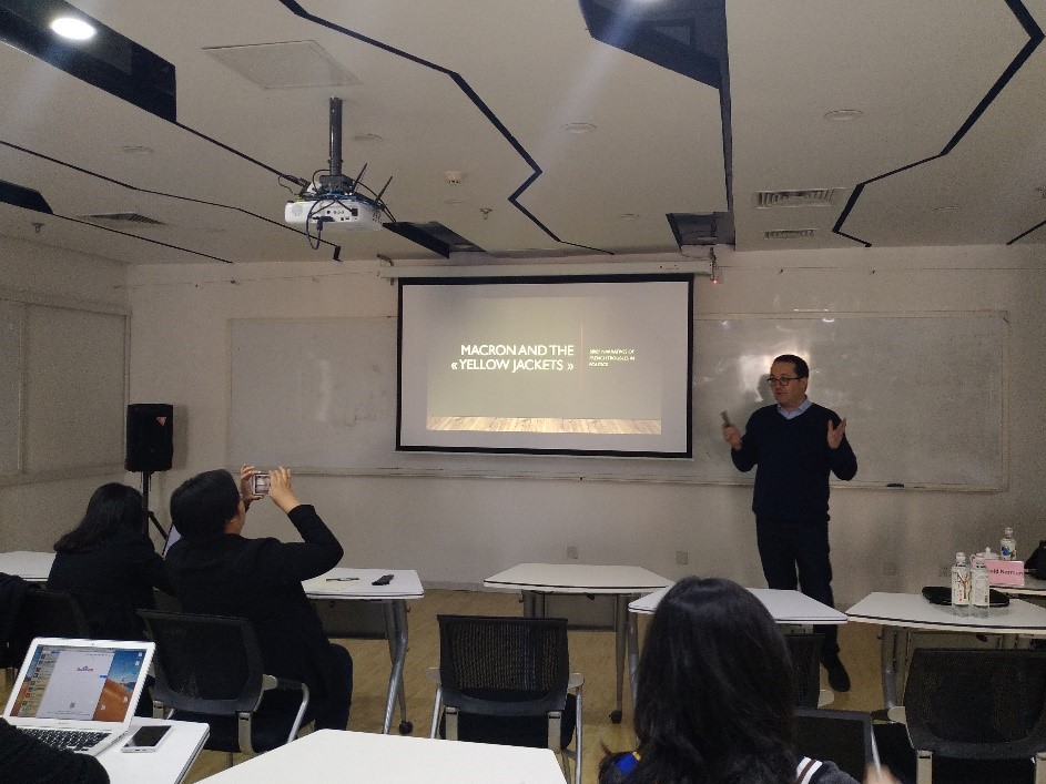 2018年12月19日下午14:00-16:00,由Romuald Normand 教授主讲的Macron’s Public Policy and Yellow Vest Protest in France讲座在主楼A区506举办。