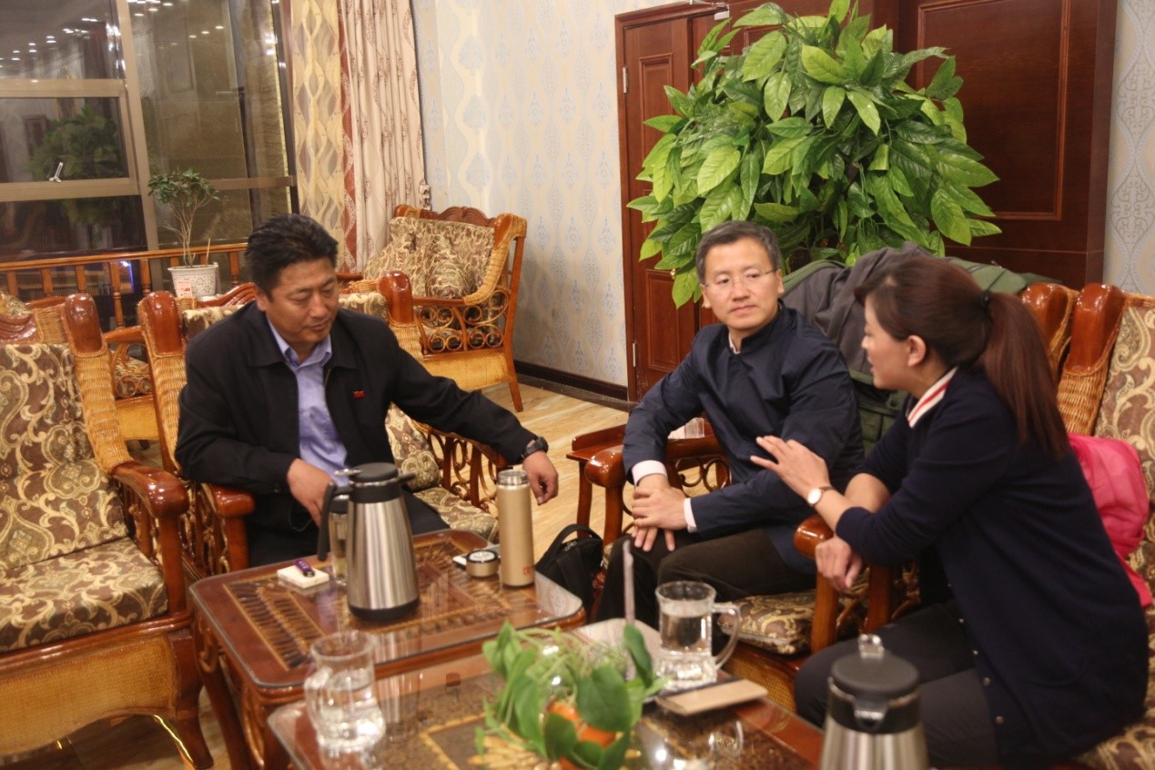 图5 王宏新老师与甘孜州团委钟色书记、理塘县委多吉书记交谈
