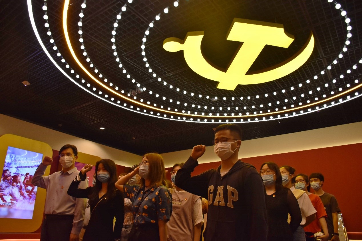 参观结束后,党委书记于海波带领大家面向党旗举起右手,以洪亮的声音庄严重温了入党誓词。