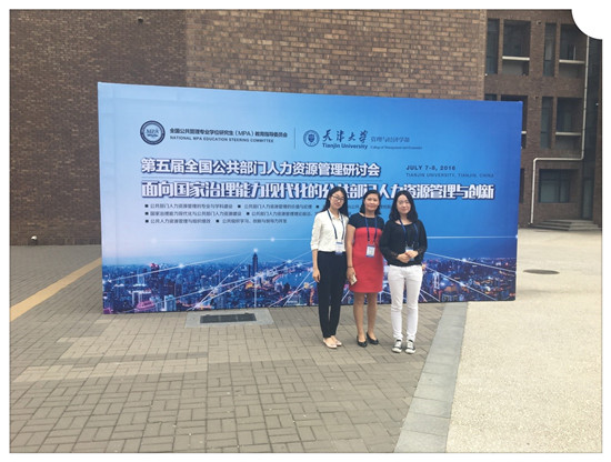 7月7日-8日,公司人力资源管理系王颖教授应邀前往天津大学参加第五届全国公共部门人力资源管理研讨会。本次会议由全国公共管理专业学位研究生教育指导委员会主办,天津大学管理与经济学部承办,以推动人力资源管理团队建设与发展为出发点,邀请全国多所高校具有公共部门人力资源管理博士点、硕士点,设置人力资源管理课程的专家、学者以及《中国行政管理》《中国人力资源开发》等刊物媒体参会,研讨学术及实践前沿问题。