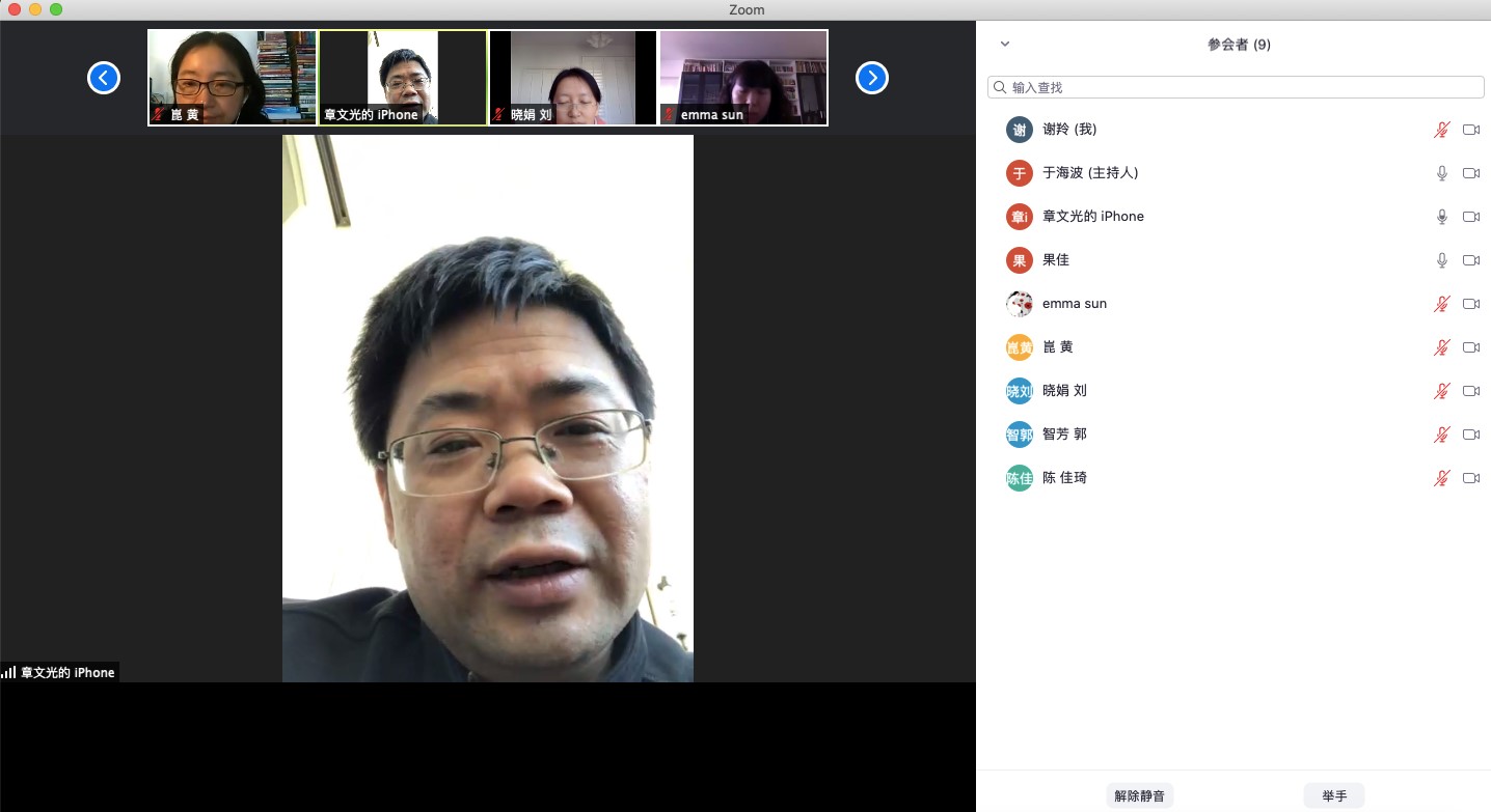 2020年3月14日上午11:30,公司党委通过Zoom平台召开了线上党委工作会议。党委书记、统战委员于海波,党委委员、经理章文光,党委副书记郭智芳,组织委员孙宇,宣传委员刘晓娟,青年委员、副经理果佳,党委委员、工会主席黄崑,纪检委员谢羚参加会议。会议由书记于海波主持。