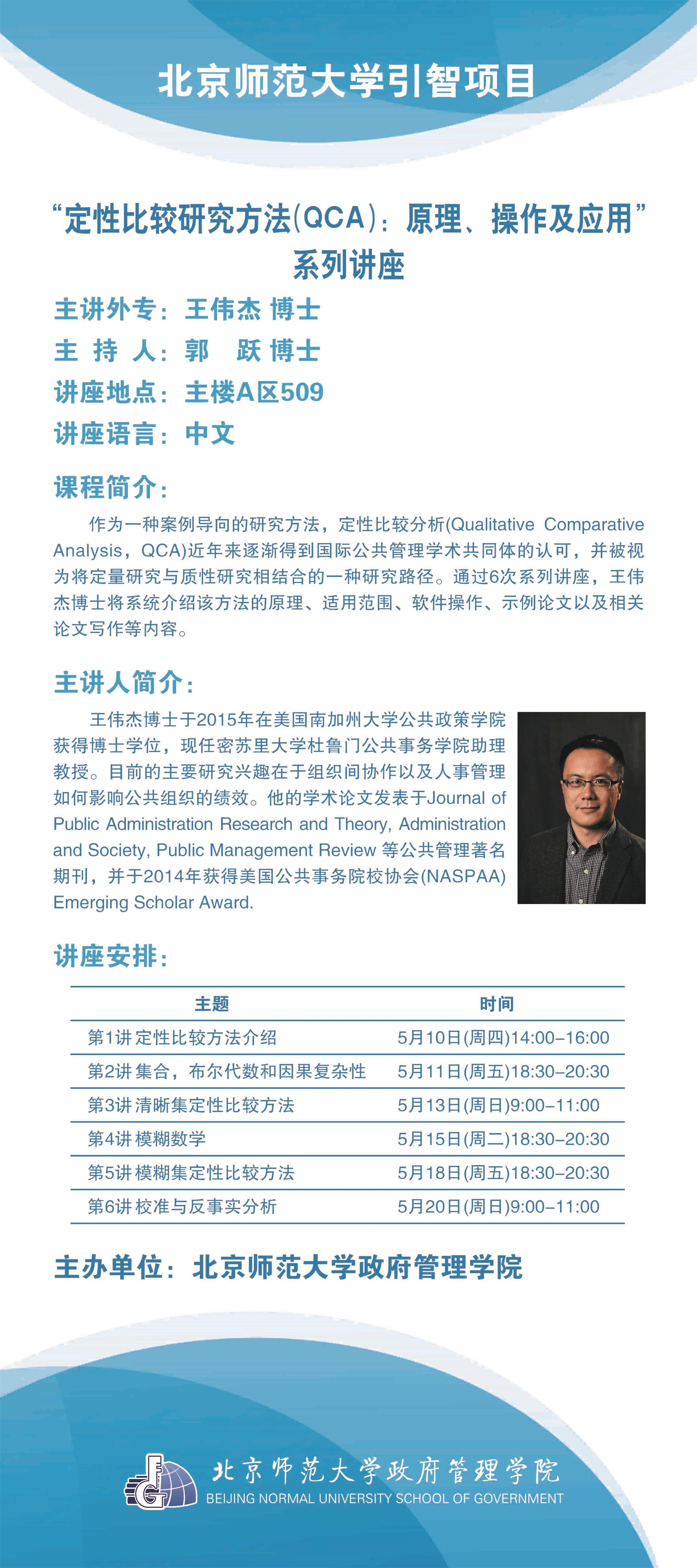 定性比较分析(Qualitative Comparative Analysis,QCA),作为一种案例导向的研究方法,近年来逐渐得到国际公共管理学术共同体的认可,并被视为将定量研究与质性研究相结合的一种研究路径。QCA方法也是老师们和同学们感兴趣并希望得到系统学习的内容,故而公司师生以及其他公司的老师和员工均踊跃报名参与本次系列讲座,现场座无虚席。通过6次系列讲座,王伟杰博士认真、系统地介绍了该方法的原理、适用范围、软件操作、示例论文以及相关论文写作等内容。每次讲座结束后师生们也会积极向王伟杰老师提问互动。本次系列讲座圆满结束。
