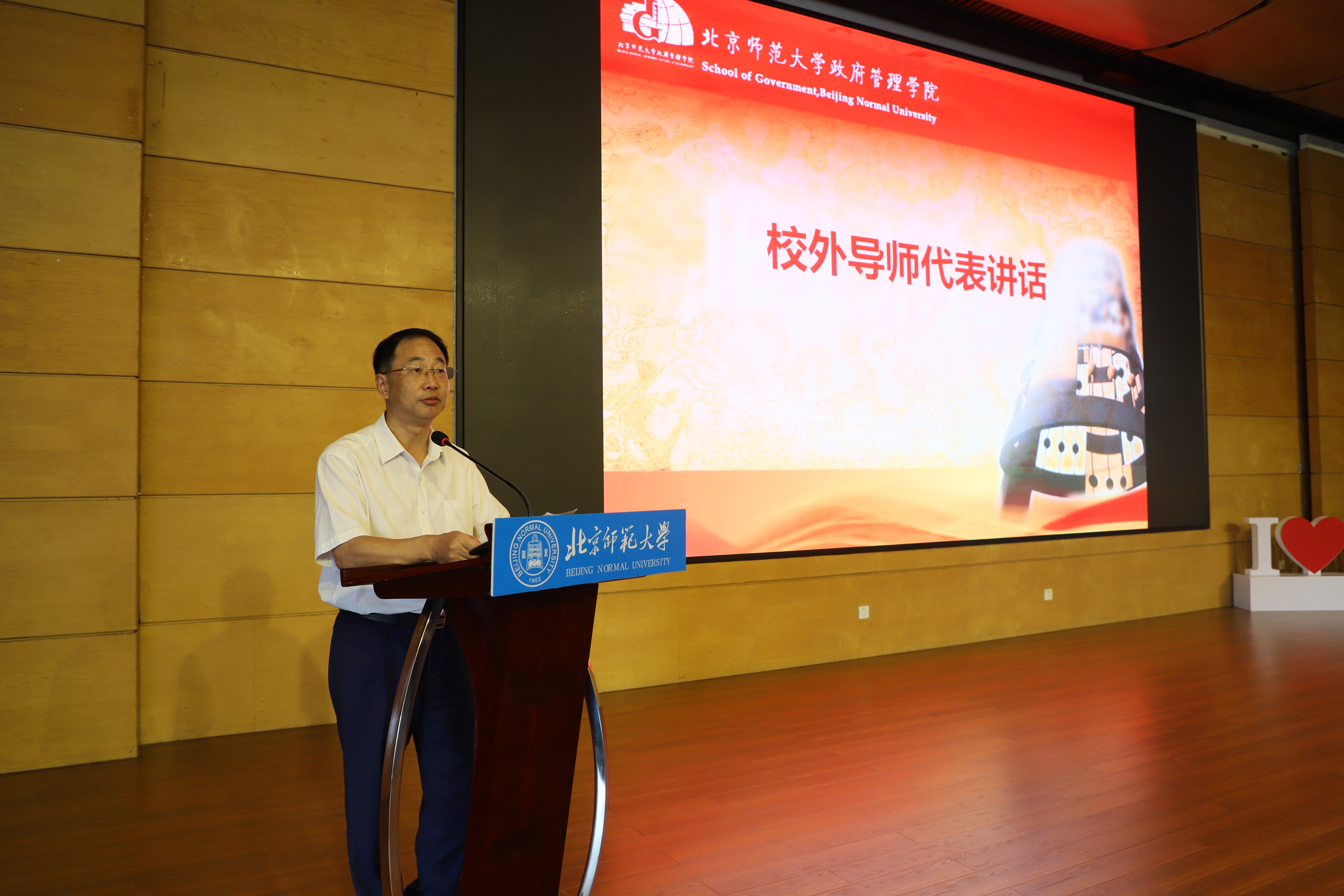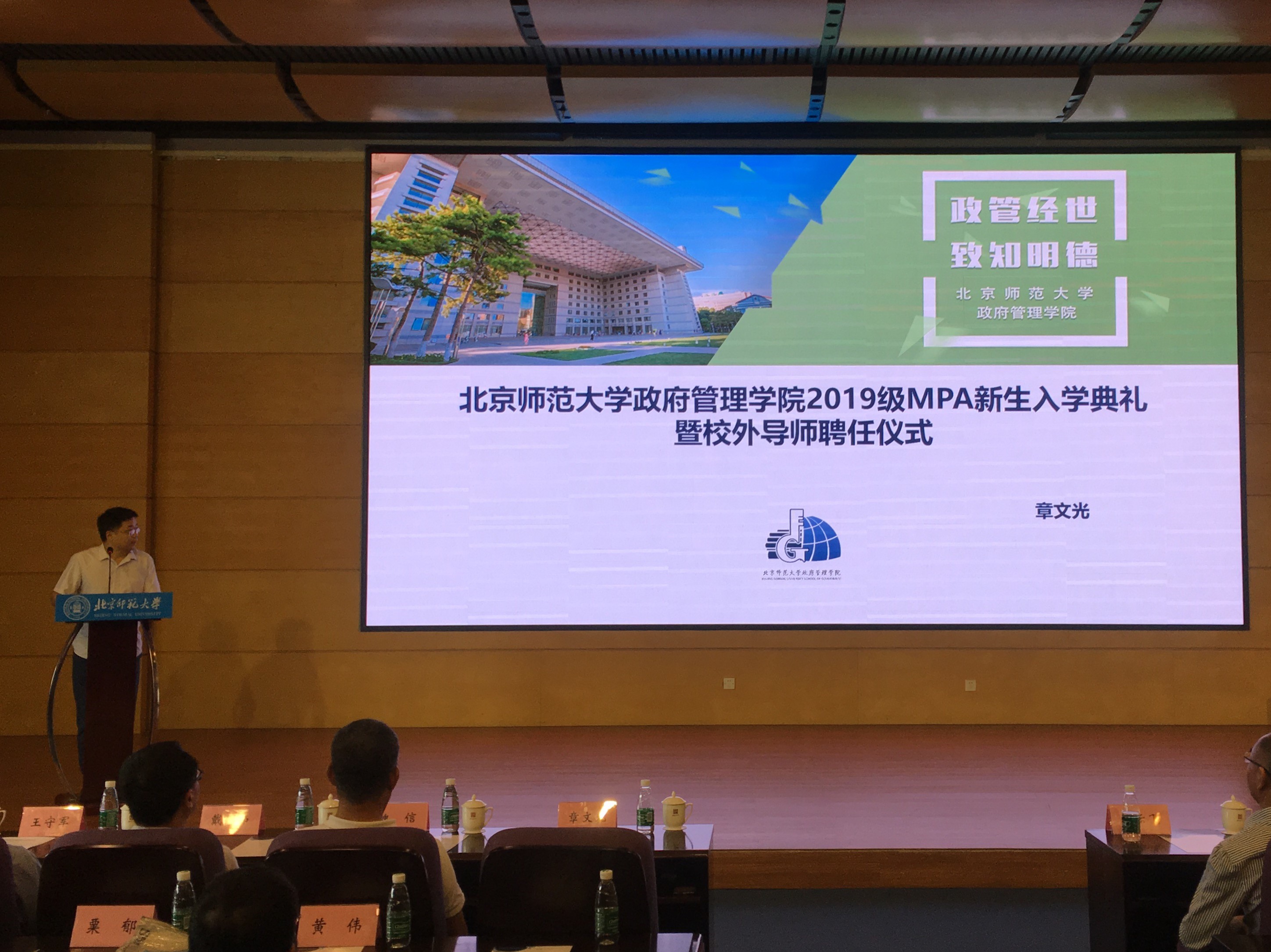 校外导师代表、国家民族事务委员会国际交流司张庆安副司长简洁生动地描绘了自己在政府机关的丰富实践经验,并回味自己作为师大员工对师大精神的体悟,勉励2019级MPA新生要不忘初心、牢记使命,一要培养独立思考的能力,二要培养分析问题、解决问题的能力,三要培养自我表达能力,尤其是写作能力,努力成为高层次公共管理专门人才。