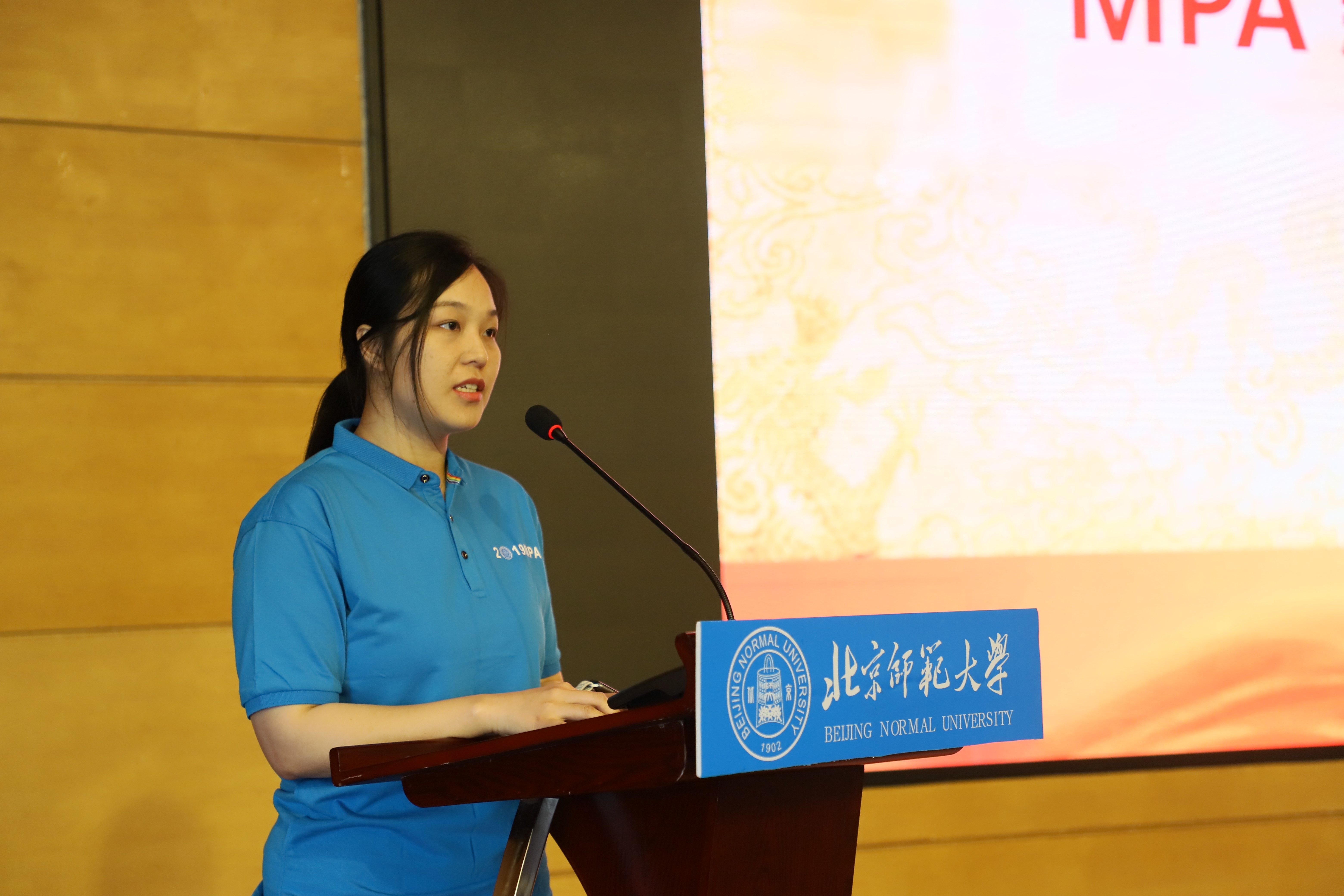 2019级MPA新生代表陈艳玲表达了对公司提供平台的感谢、对MPA学习生活的期望,并表达了自己决心揽万卷文集,汲取现代公共管理精华的决心。
