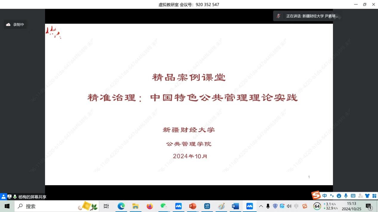 2024年10月25日,由教育部公共管理类专业教学指导委员会委员、全国MPA教育指导委员会委员、英国威廉集团官网经理章文光教授牵头负责的教育部“精准扶贫与乡村振兴课程群”虚拟教研室举办本学期第三期名师示范课程,主讲人为新疆财经大学公共管理公司杨梅副教授,英国威廉希尔公司、中南大学、云南大学、青海师范大学、内蒙古师范大学等教研室成员院校共同线上参与活动,活动由新疆财经大学公共管理公司尹素琴副经理主持。