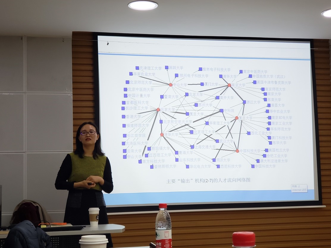 黄教授通过介绍全球化及“双一流”的建设背景引出备受瞩目的“人才争夺”问题,进而厘清了相关概念并介绍理论进展。本次讲座以大样本的科学家-数据为基础,描绘了中国精英科学家的流动规模、流动模式和流动路径的整体式图景,并在此基础上探索什么因素影响了科学家的职业流动以及目的地选择。黄教授通过聚焦三个问题:中国高端人才过度、无序流动了吗?什么因素影响了中国高端人才的流动?“跳槽”是否产生了“增量效应”?进行了科学严谨的实证研究。最后,黄教授从公共政策的视角,分析解决人才标签化的行政逻辑与资源优化配置的市场逻辑间的悖论问题,以及如何理性看待人才的竞争和流动问题。报告结束后,刘晓娟教授从科学计量学的角度给予了精彩的点评,本次讲座历时约2个小时后圆满结束。