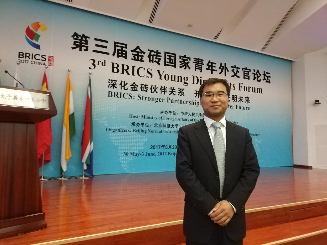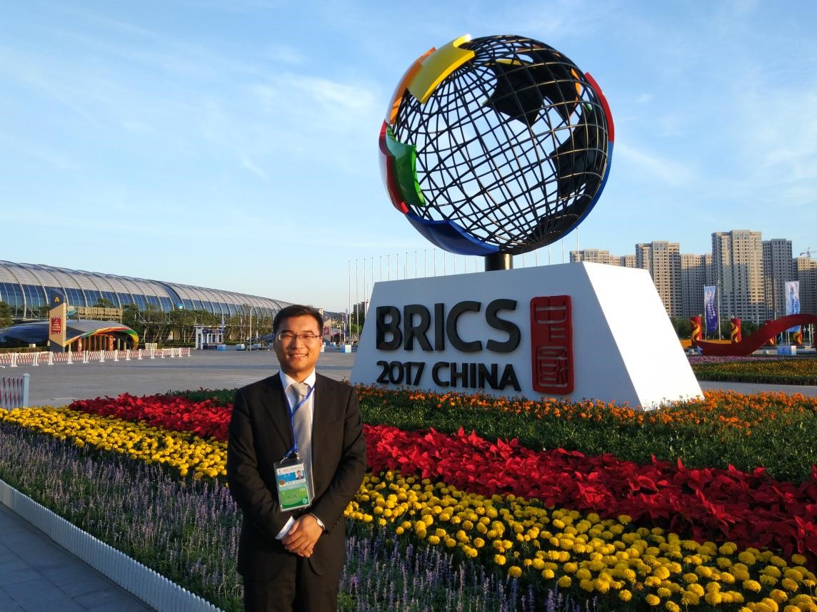 王磊老师的努力直接服务于金砖国家领导人厦门会晤及有关配套活动,为金砖国家重大主场外交的胜利举办做出了应有的贡献,获得了中央有关部门和社会舆论的良好评价,是学者以其所学服务国家、提供重要智力支持的典型案例。作为公司青年教师,他的优秀表现也为公司和公司赢得了荣誉,形成了良好的社会效应,并推动了公司金砖国家研究和相关学科的快速发展,在国内奠定了领先优势。今年7月,经过教育部严格评选,公司金砖国家合作中心成功入选教育部区域和国别研究培育基地。(交流合作部供稿)