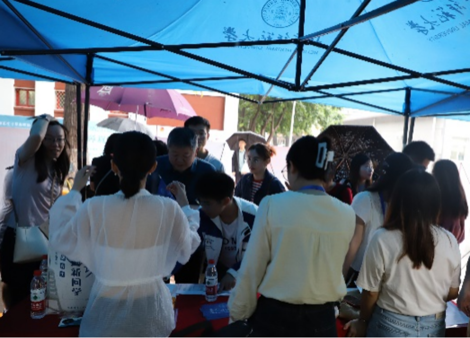 师兄师姐们在门口领取了精心准备的秩年章套装、师大明信片以及手持小校旗等纪念品,小小的纪念品表达了师大、政管对员工们的由衷欢迎!