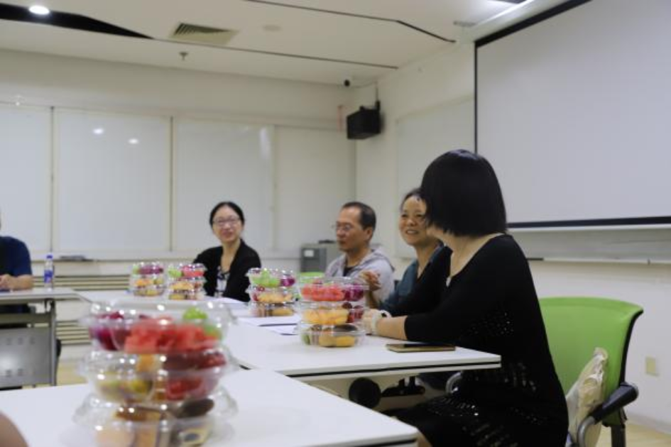 茶话会开始前,员工们与老师闲谈,气氛惬意。茶话会开始后,几位员工进行自我介绍,不自觉地与老师们回忆起员工时代,老师为员工们介绍公司新变化,同时对员工们现况表达了关心。老师和同学们一边享用公司提前为大家准备的水果点心,一边共同追忆曾经在师大校园奋斗的点点滴滴。