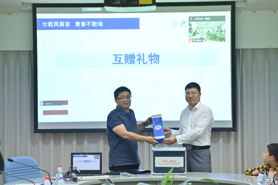 线上员工代表张永强也回忆了在校求学时与老师和同学们的点滴,表达了对老师们的感谢和祝愿。他表示,自己深刻感知到年华易逝,劝告师弟师妹们要珍惜当下,抓住机会。