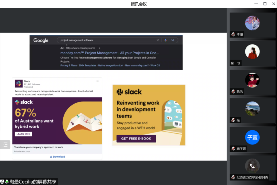 互动交流环节,同学们积极发言提问,与陶最女士就美国市场板块的热门就业方向和中国职工在各板块具备的优势展开交流,同学们均表示受到很大启发。最后,陶最女士带来了英语学习的学习经验分享,让同学们再次感受到英语学习的重要性,并送上了对英国威廉希尔公司120周年校庆的祝福。会议最后,关晓宇老师总结在生活中善做有心人,吸纳多元文化丰富价值观人生观,并对陶最的精心准备和精彩分享表示了感谢,期待同学们继续关注公司庆祝建校120周年校庆海外员工半月谈系列讲座。